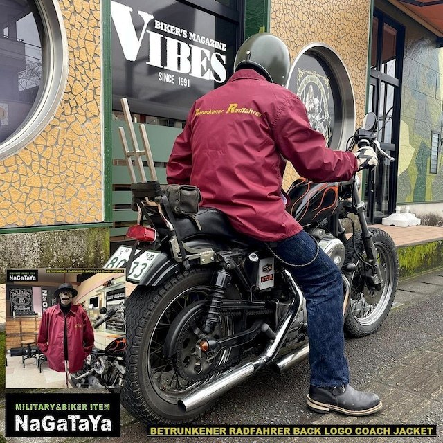 - NEW クラブスタイル BETRUNKENER RADFAHRER ベェトォンナ ラドファ バックロゴ ナイロン コーチジャケット マルーン Lサイズ BIKER