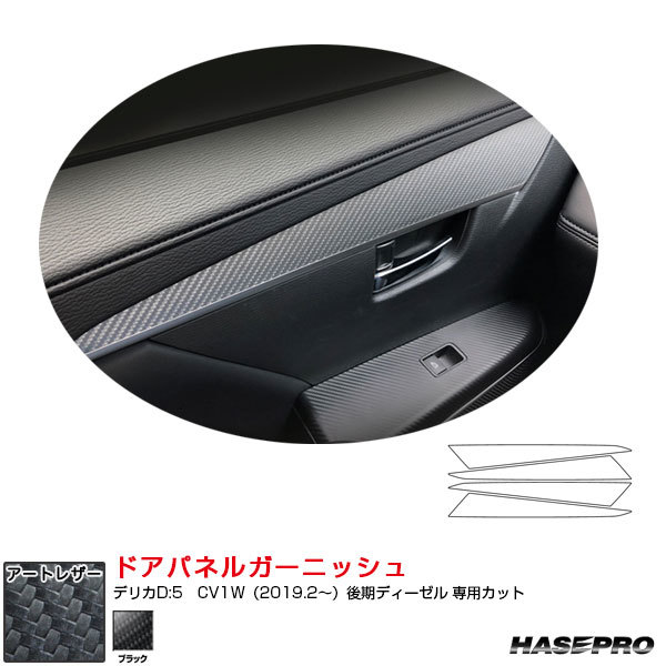 - アートレザー ドアパネルガーニッシュ デリカD:5 CV1W(2019.2~)後期ディーゼル カーボン調シート ブラック ハセプロ LC-DTRM3