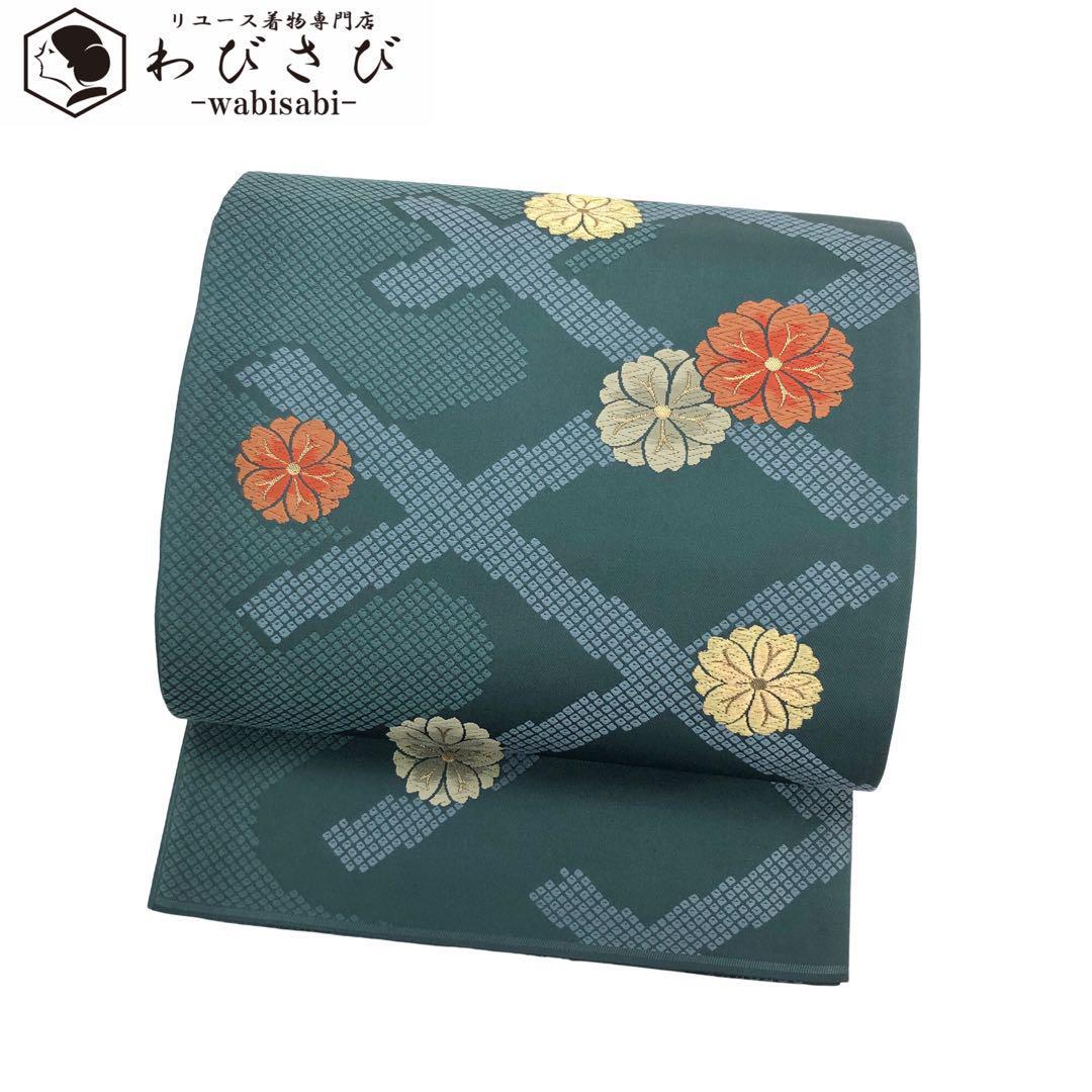 - 袋帯 桜の花 飛び柄 鹿の子模様 金糸 鉄色 O-3290