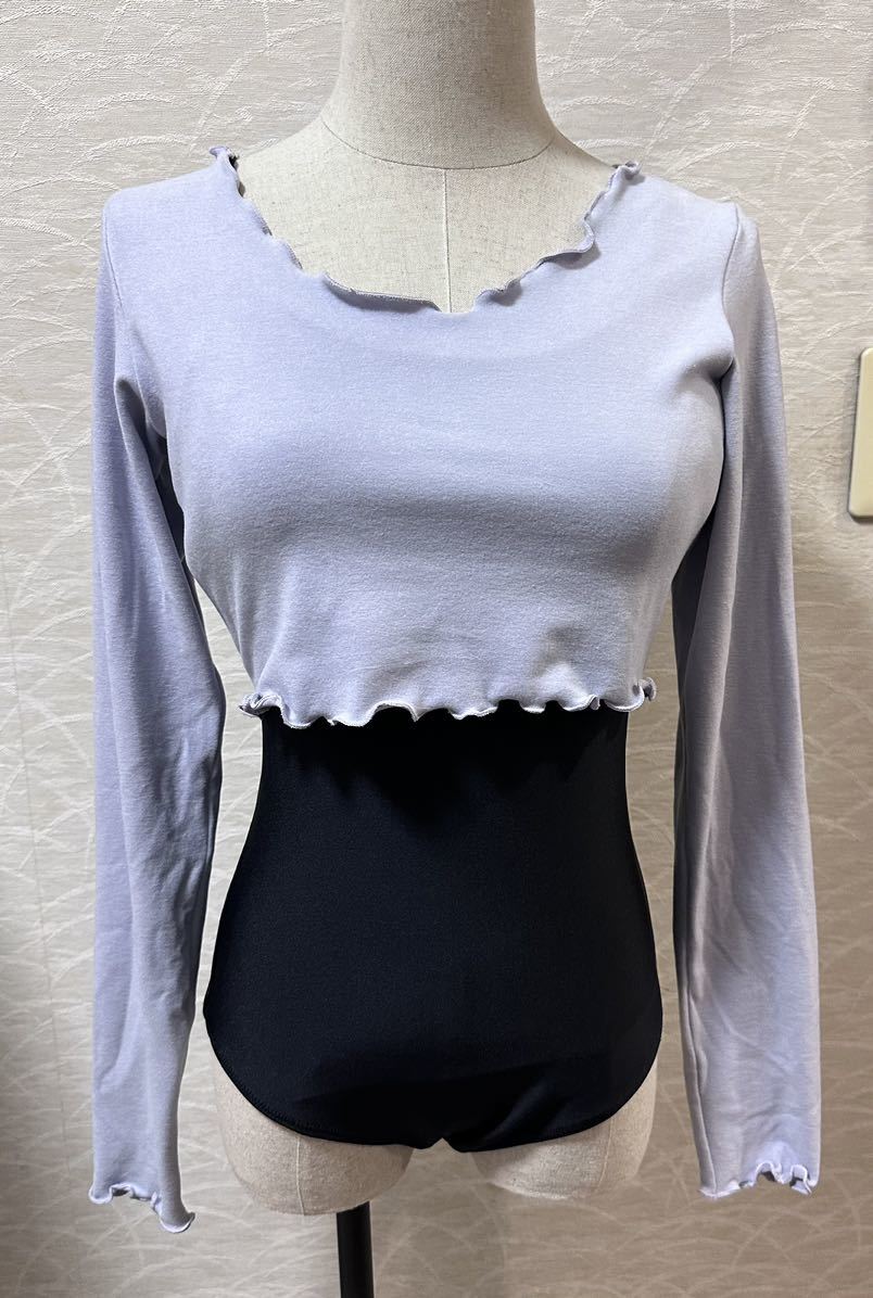 - 特価!バレエ/ピラティス/ヨガなど 長袖ショートトップス フリース調 ラベンダー M