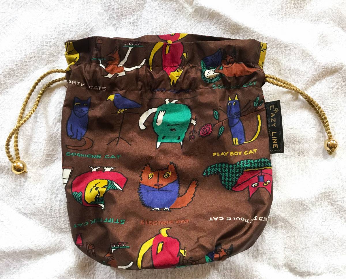 - 【アーティスティックなネコちゃん柄がおしゃれ♪】CRAZY LINE BY GIAN ANTONIO きんちゃく袋 クレイジーライン ジャン・アントニオ