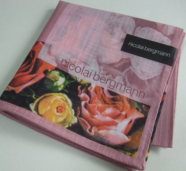- Nicolai Bergmann ニコライ バーグマン 大判 ハンカチ 未使用品 百貨店 薔薇 フラワー柄