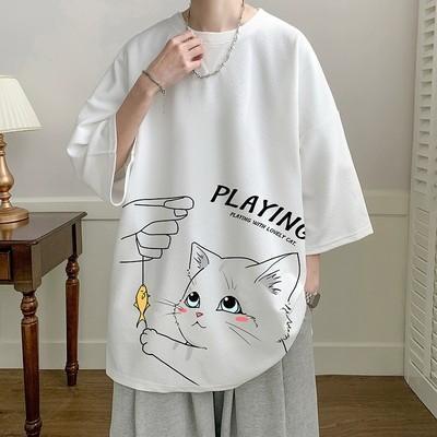 - ホワイト色★XLサイズ 猫柄 tシャツ 半袖メンズ