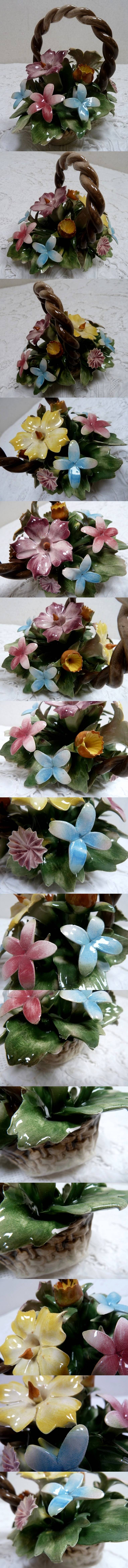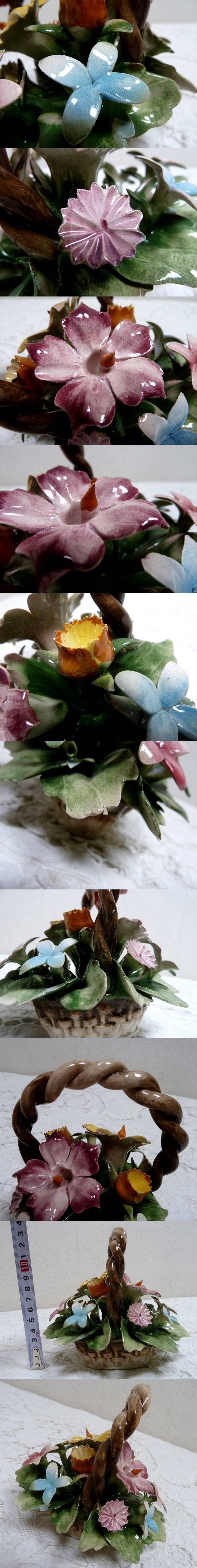 - (☆BM)イタリア製/カポディモンテ CAPODIMONTE 陶花(0130-①)フラワーバスケット 陶器製 小花 野花 置物 オブジェ 洋風 ITALY