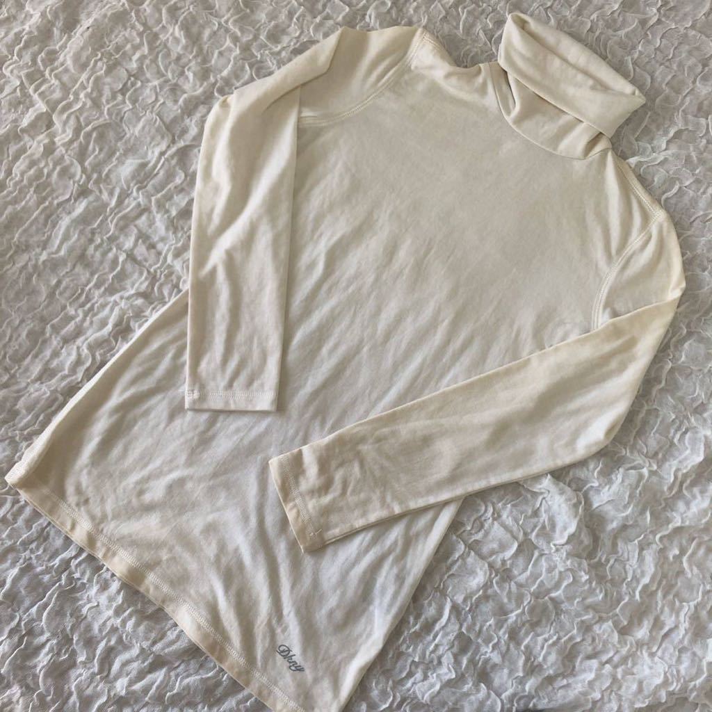 - DKNY DONA KARAN NEWYORK ロゴプリント ポリエステル&綿 薄地 長袖 タートルネック カットソー トップス アイボリー M ★1000