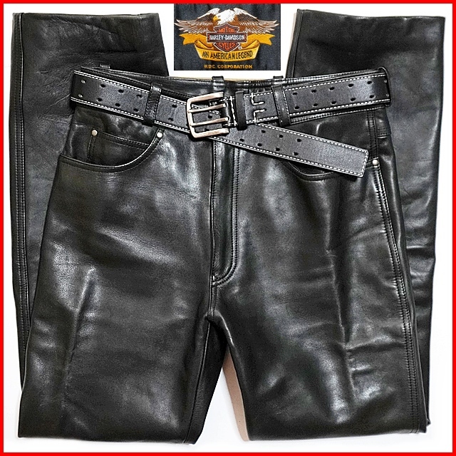 - 即決★HARLEY DAVIDSON★メンズW32≒78㎝ レザーパンツ ハーレーダビッドソン 本革 ブラック 黒 肉厚 ライディング バイカー 本皮