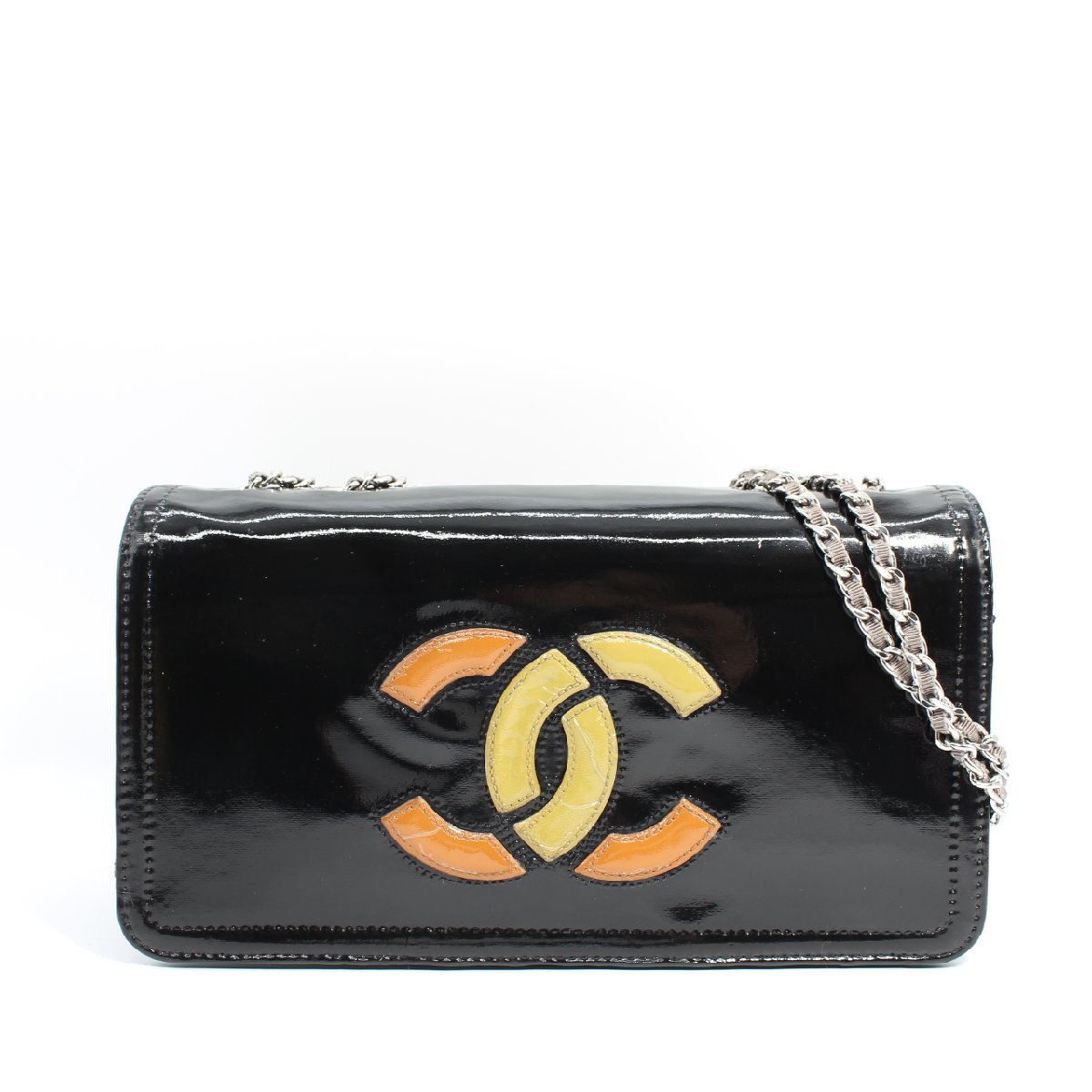 - セール シャネル CHANEL エナメル リップスティック ダブルチェーンショルダーバッグ 黒 斜め掛け 中古 A18