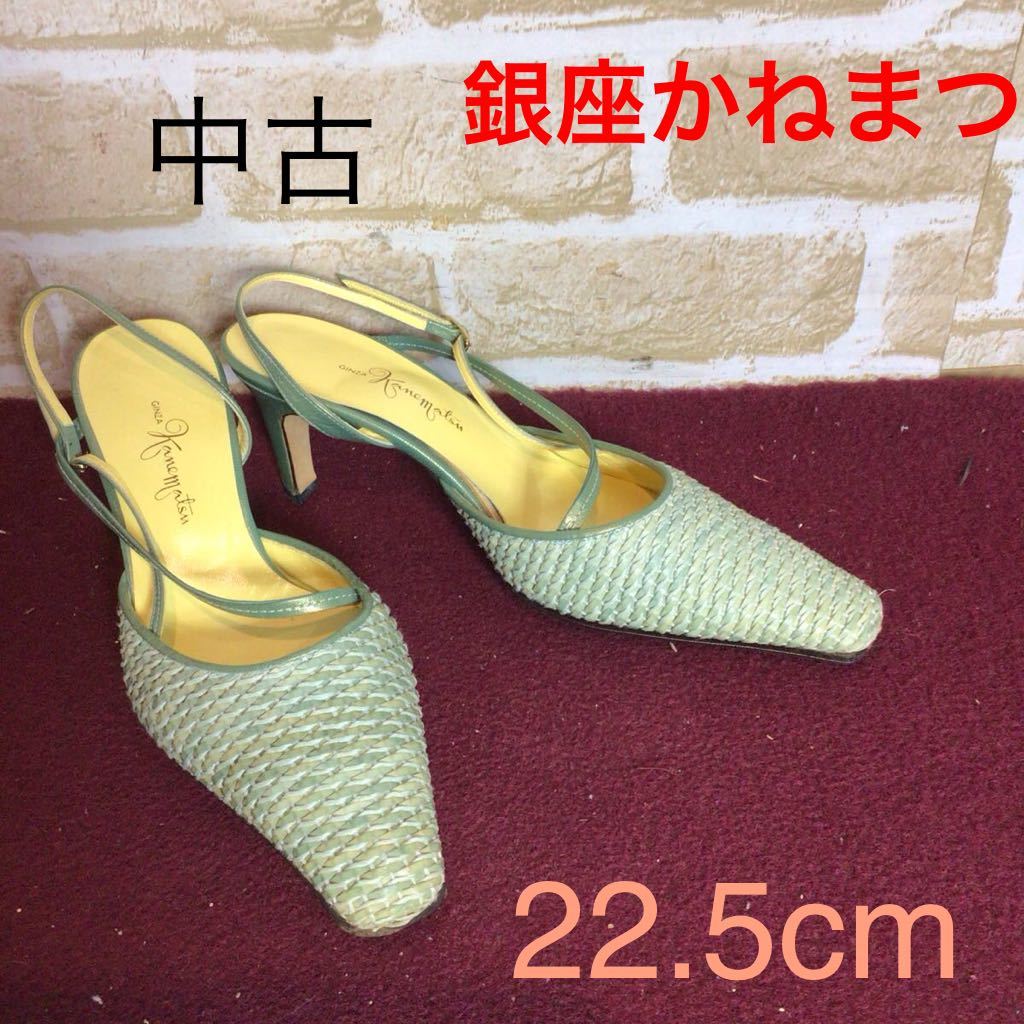 - 【売り切り!送料無料!】A-348 銀座かねまつ!アンクルストラップパンプス!22.5cm! ミドリ!グリーン!編み込みデザイン!日本製!中古!