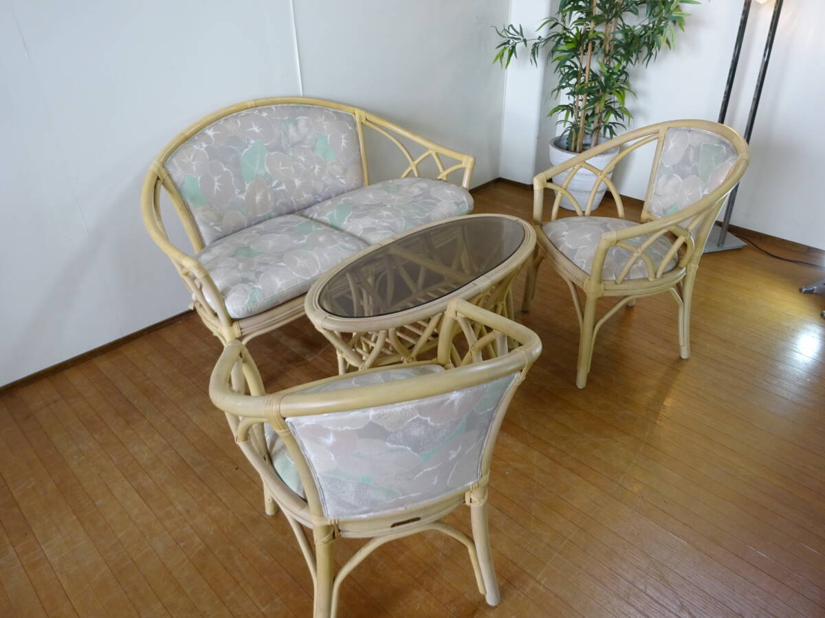 - ■□ラタン 籐 テーブル&チェア 4点セット ガーデンテーブルセット □■