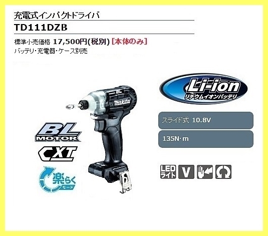 > マキタ 10.8V 充電式インパクトドライバ TD111DZB (黒) [本体のみ] ■安心のマキタ純正/新品/未使用■