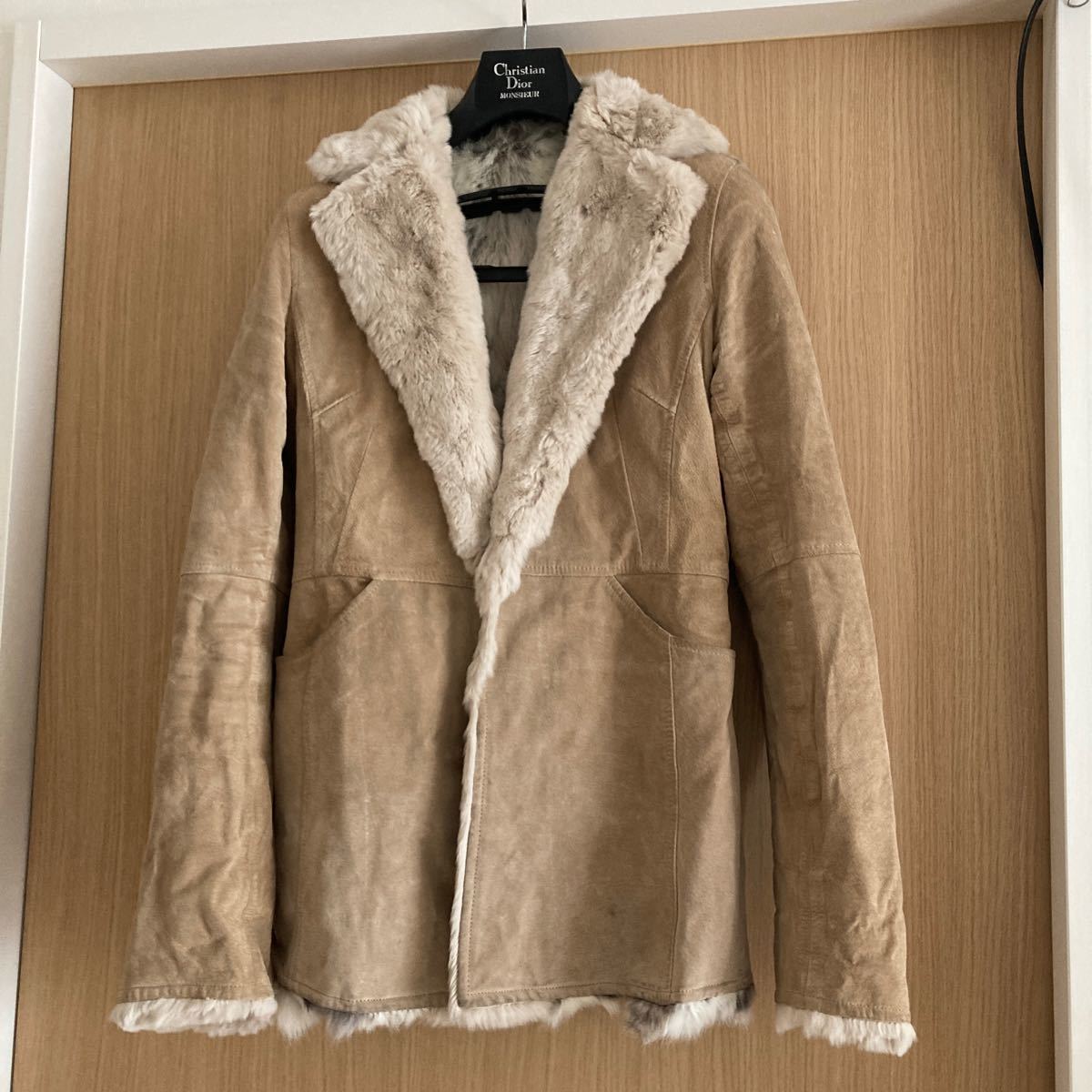 - 本革 コート ジャケット アウター リアル ラビット フカフカ