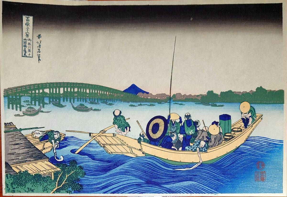 - f20240206026〇富嶽三十六景 葛飾北斎筆 御厩川岸両國橋 古法純手摺彩色木版画 世界的に有名な作品 東京国立博物館監修 昭和年代〇和本古書