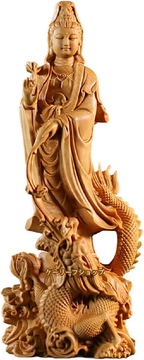 - 【ケーリーフショップ】 龍上観音 観音像 龍乗観音 龍観音 木彫り 仏壇仏像 祈る 厄除け 高級天然ツゲ木彫り 観音菩薩立像