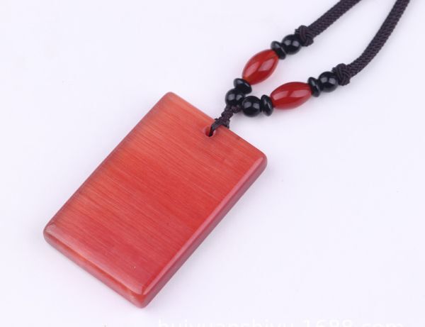 - 海外発送 人造石 キャッツアイ 猫目石 Cats eye 安全守り ネックレス ペンダント58/36/7mm パワーストーン レッド