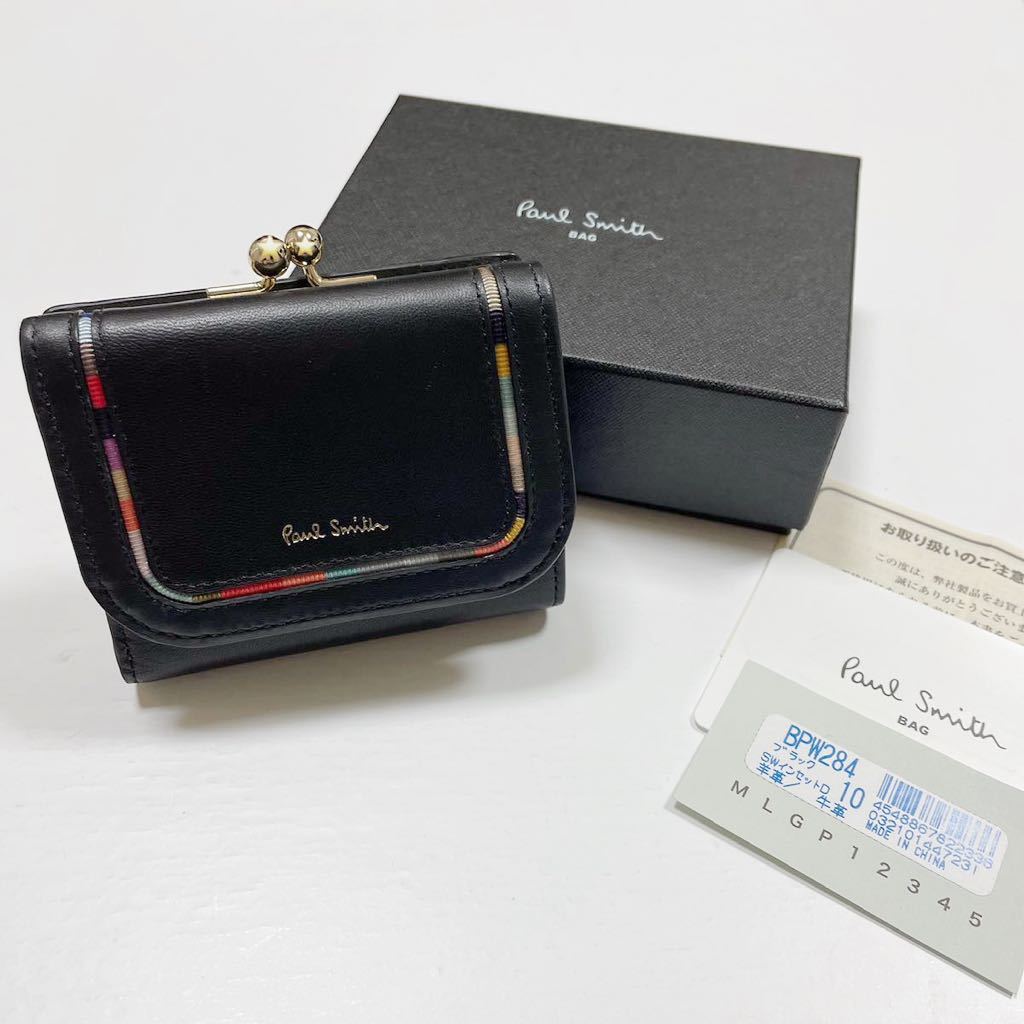 - 新品箱付き ポールスミス 財布 三つ折り がま口 黒 インセット 28410/402GE