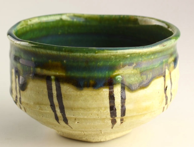 - 北大路魯山人 織部 茶碗 共箱 東大寺清水公照書付 本物返品OK 240229−3