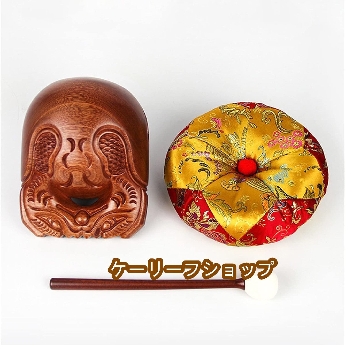 - 【ケーリーフショップ】木魚 仏壇 用 仏具 楽器 仏壇用の仏具紫檀木3点セット仏壇 用の 仏具 楽器 鳴り物 ポクポク (7寸)