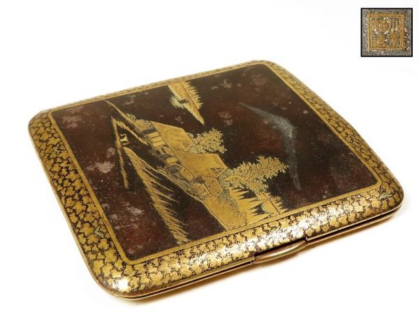 - 【7463】明治期 鉄地 金銀象嵌 在銘入り シガレットケース (初品・買取品)