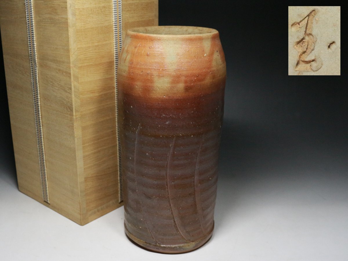- ■備前■木村玉舟・花入・花瓶・花器・箱付・検 木村宗得・f921