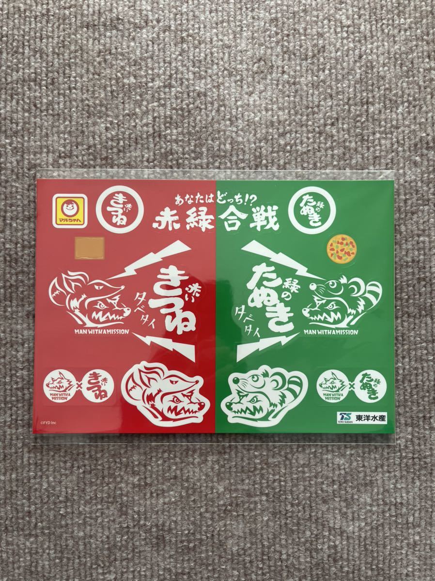 - MAN WITH A MISSION 赤いきつねと緑のたぬき ステッカー 新品未使用 1枚 コラボステッカー マンウィズ 赤緑合戦