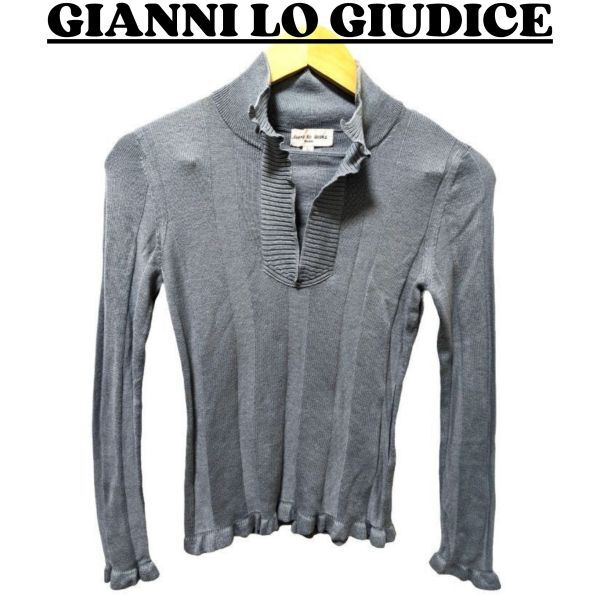 - ★美品 GIANNI LO GIUDICE ジャンニロジュディチェ レディース ニット 長袖 エンボス加工 裾袖口ギャザー ブルーオーシャン 36 S nr1-007