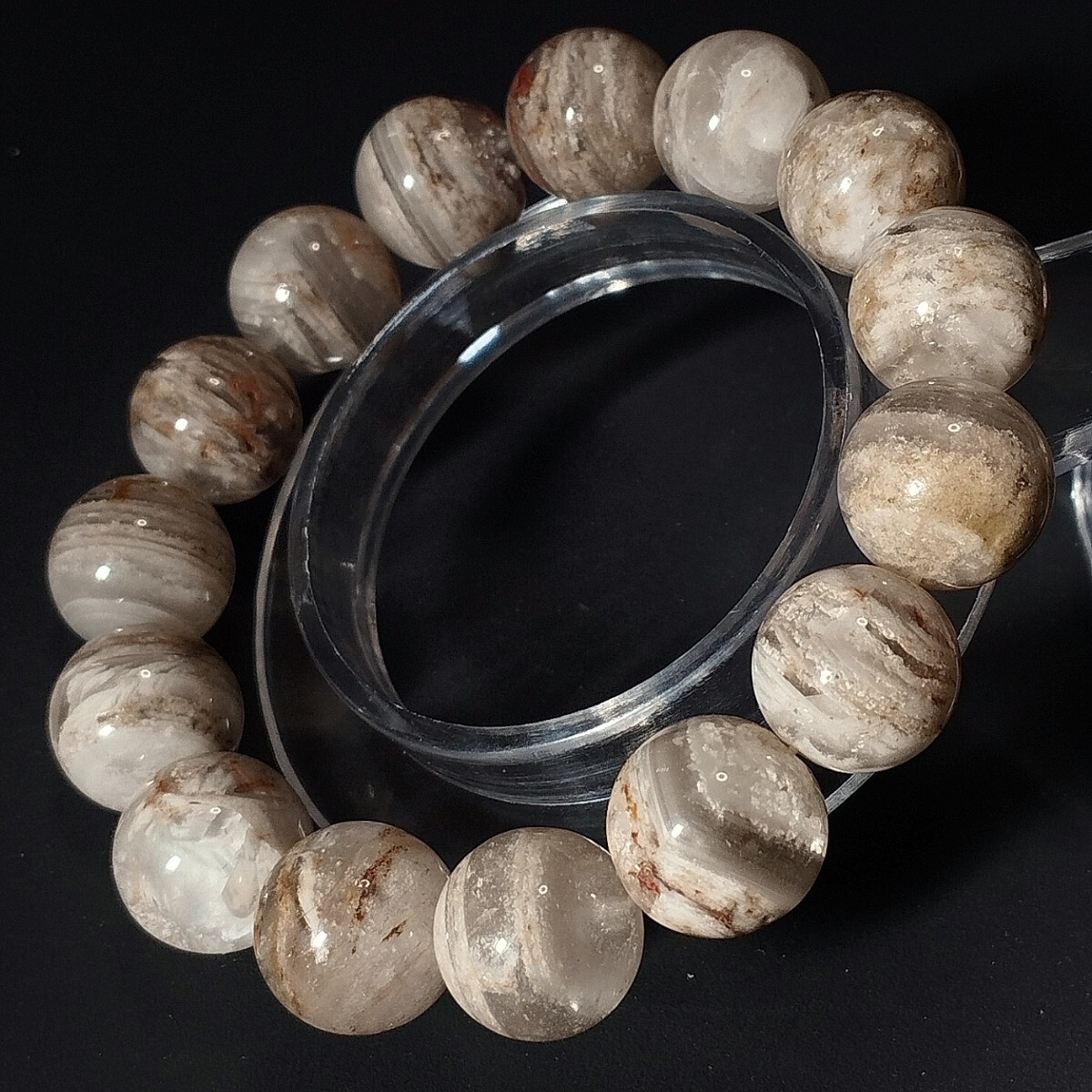 - 千層ガーデンクォーツ ブレスレット 千層龍神ガーデン 幻影白庭園水晶 18cm ホワイトガーデンクォーツ ファントムガーデンクォーツ