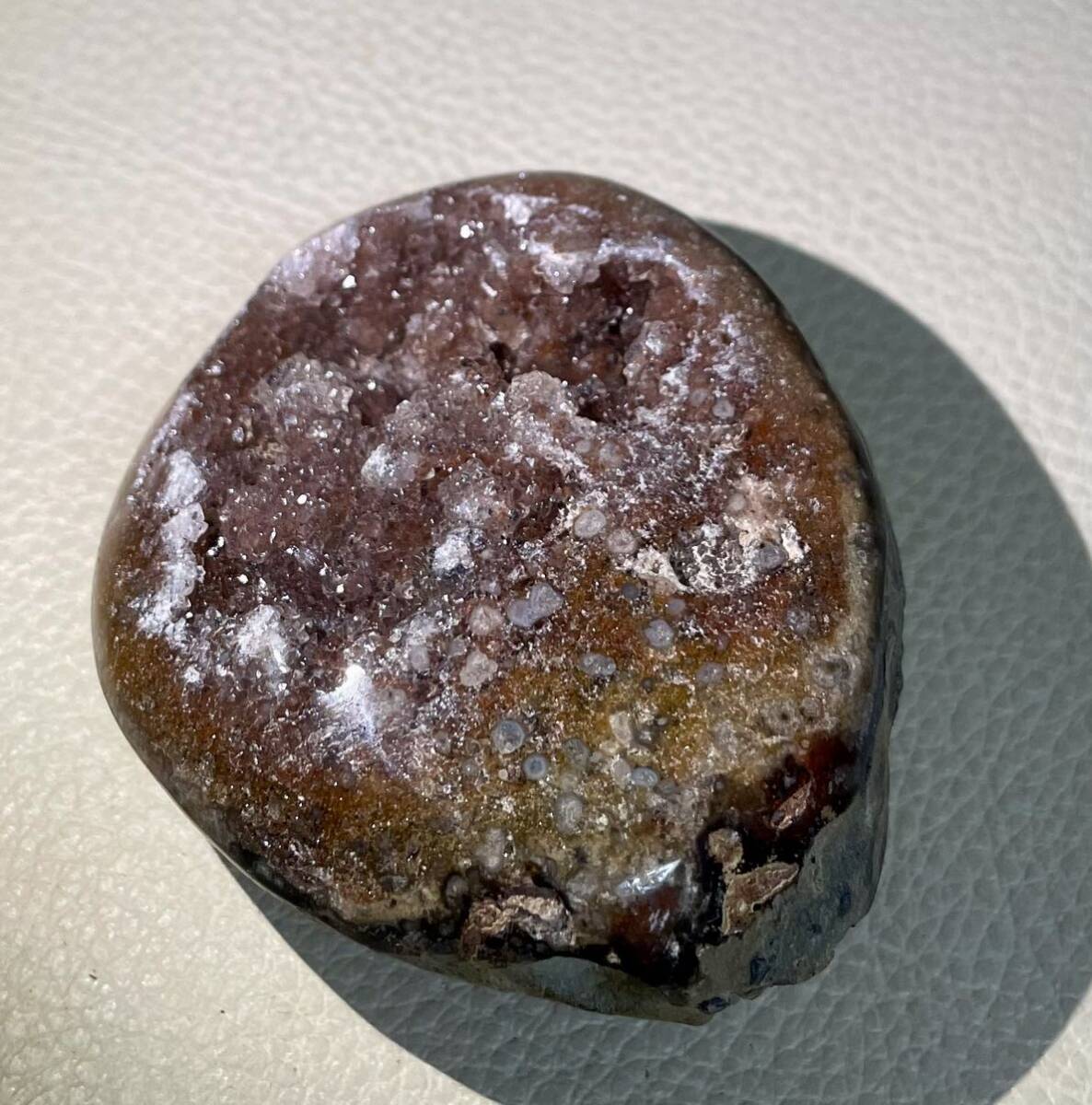 - トレジャー瑪瑙 アゲート水晶共生 風水晶 幸運 ラッキー 魔除 お守 パワーストーン 置物インテリア レッド