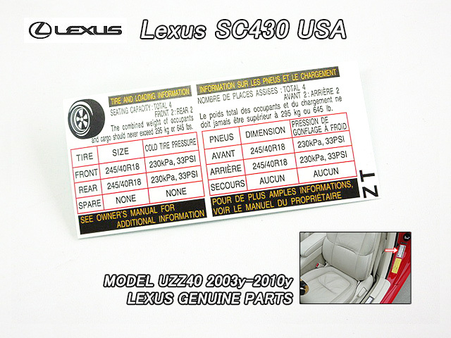 - ソアラUZZ40/LEXUS/レクサスSC430純正USラベルTire.Pressure(245/40R18inc)/USDM北米仕様コーションUSAステッカー海外タイヤ空気圧シール