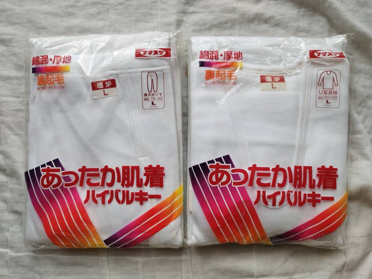 - 福助 フクスケ あったか肌着 ハイバルキー 裏起毛 長袖U首シャツ 長ズボン下 上下セット サイズL