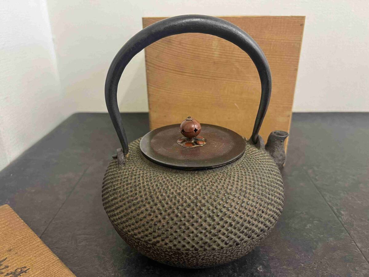 - CT5045 アンティーク 鉄瓶 蓋銅製 茶道具 木箱付き