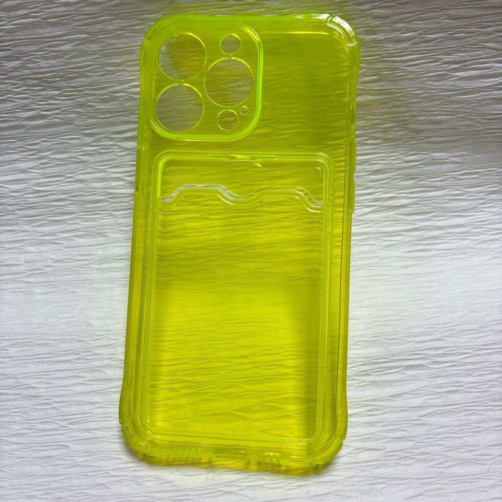 - 匿名送料無料 iPhone13pro スマホケース ネオンカラー イエロー グリーン 蛍光色 透明 クリア カード収納ポケット付き TPU素材 ソフト USED