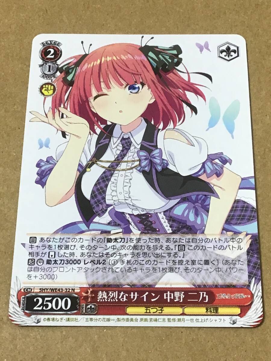 - ヴァイスシュヴァルツ プレミアムブースター 五等分の花嫁∽ 熱烈なサイン 中野 二乃 N