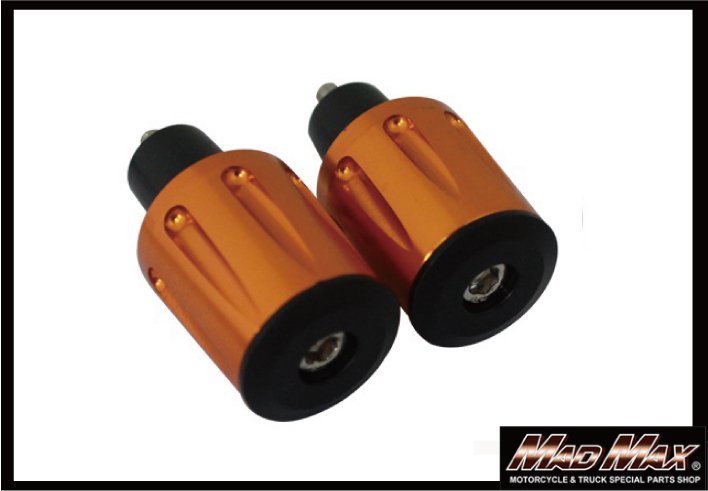 > MADMAX バイク用品 アルミハンドルバーエンド キャップ 左右セット オレンジ/内径18mm~20mmまで対応【送料800円】