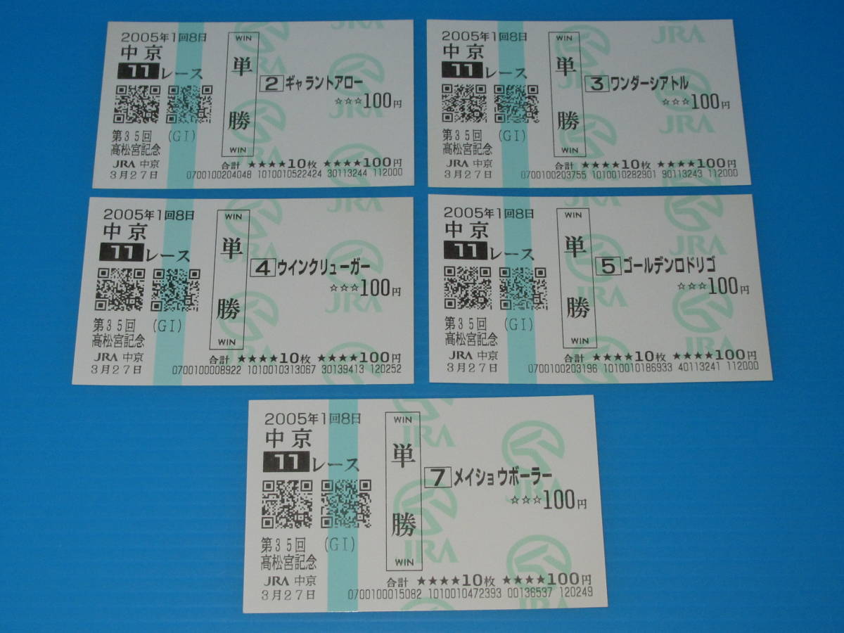 > 送料無料 単勝馬券 5枚セット★2005 第35回 高松宮記念 GⅠ 中京競馬場☆ウインクリューガー メイショウボーラー ギャラントアロー 即決!