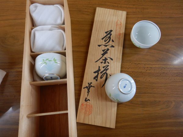 - 湯呑揃い ゆのみ 030502 有田焼 華山 白 五客 7.5x4.5cm 使用感少なし 昭和レトロ