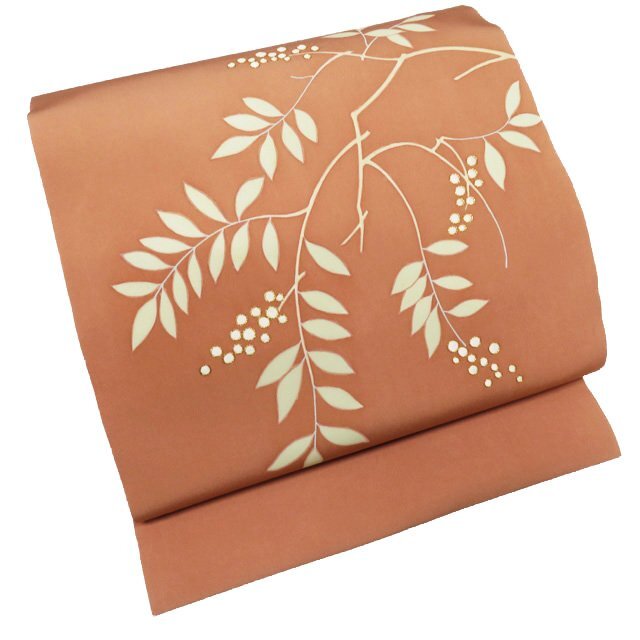 - 名古屋帯 なごや帯 中古 正絹 カジュアル 仕立て上がり 塩瀬 金駒刺繍 植物文様 ときがら茶色 きもの北條 A991-12