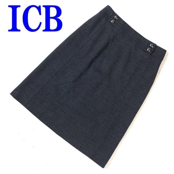 - ICB アイシービーウールダブルボタンタイトスカートグレーカジュアル ストレッチ入り スリット無 11 C9316