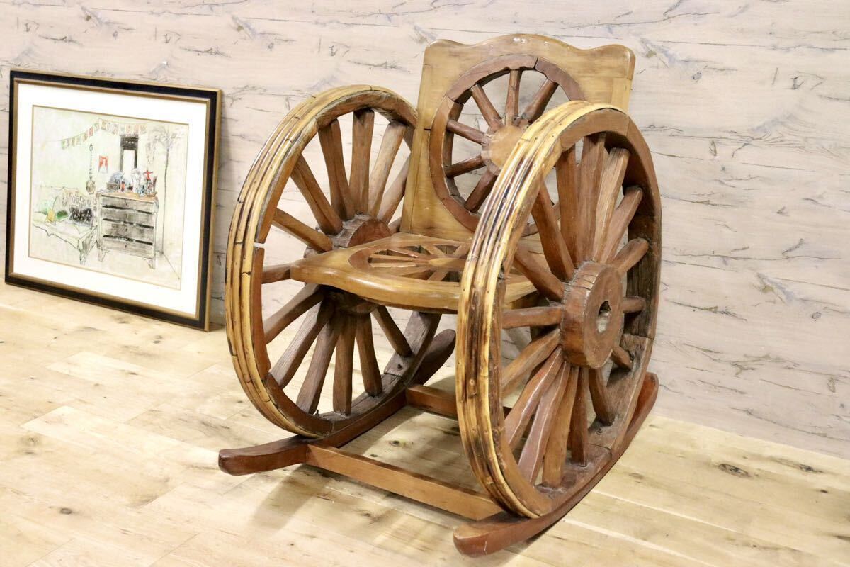 > GMGS59○車輪デザインベンチ アジアン 家具 ロッキングチェア 木製 インテリア 店舗什器 ガーデン アンティーク ヴィンテージ