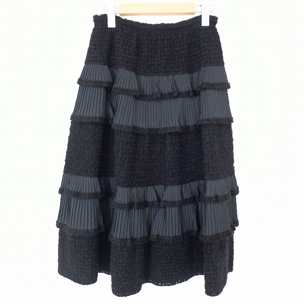 - #wnc アルバロッサ ALBA ROSSA インポートロッサ import Rossa スカート 42 黒 フレア フリル ニット レディース [870406]