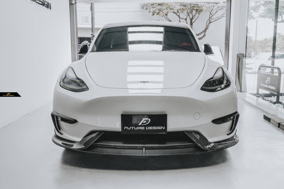 - 【FUTURE DESIGN 正規品】TESLA テスラ MODEL モデル Y フロント リップスポイラー 本物Drycarbon ドライカーボン エアロ カスタム