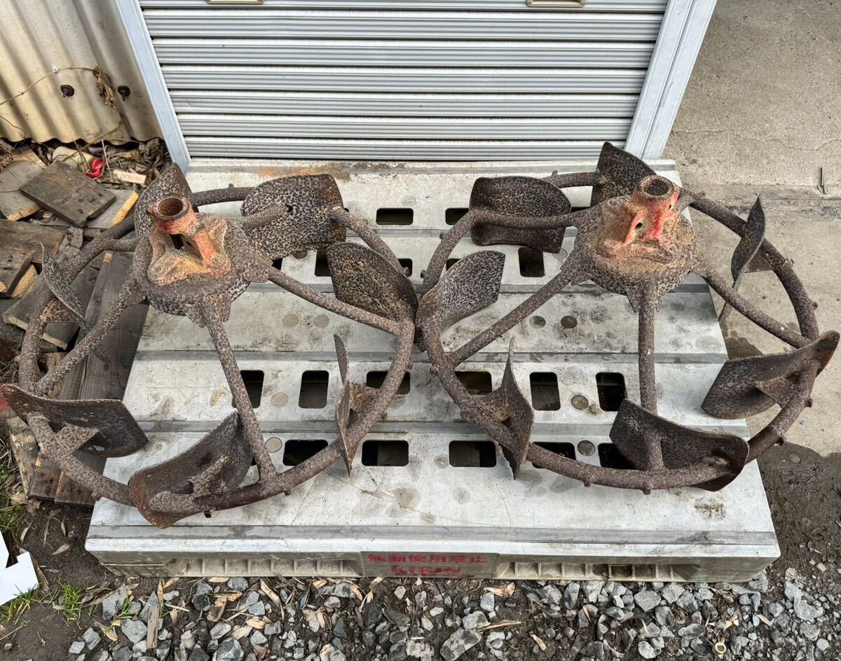 > ◆破損や腐りなどなし! 耕運機 鉄車輪 外径約690mm 取付部径約35mm ピン径約10mm 左右 2本セット テーラー 管理機