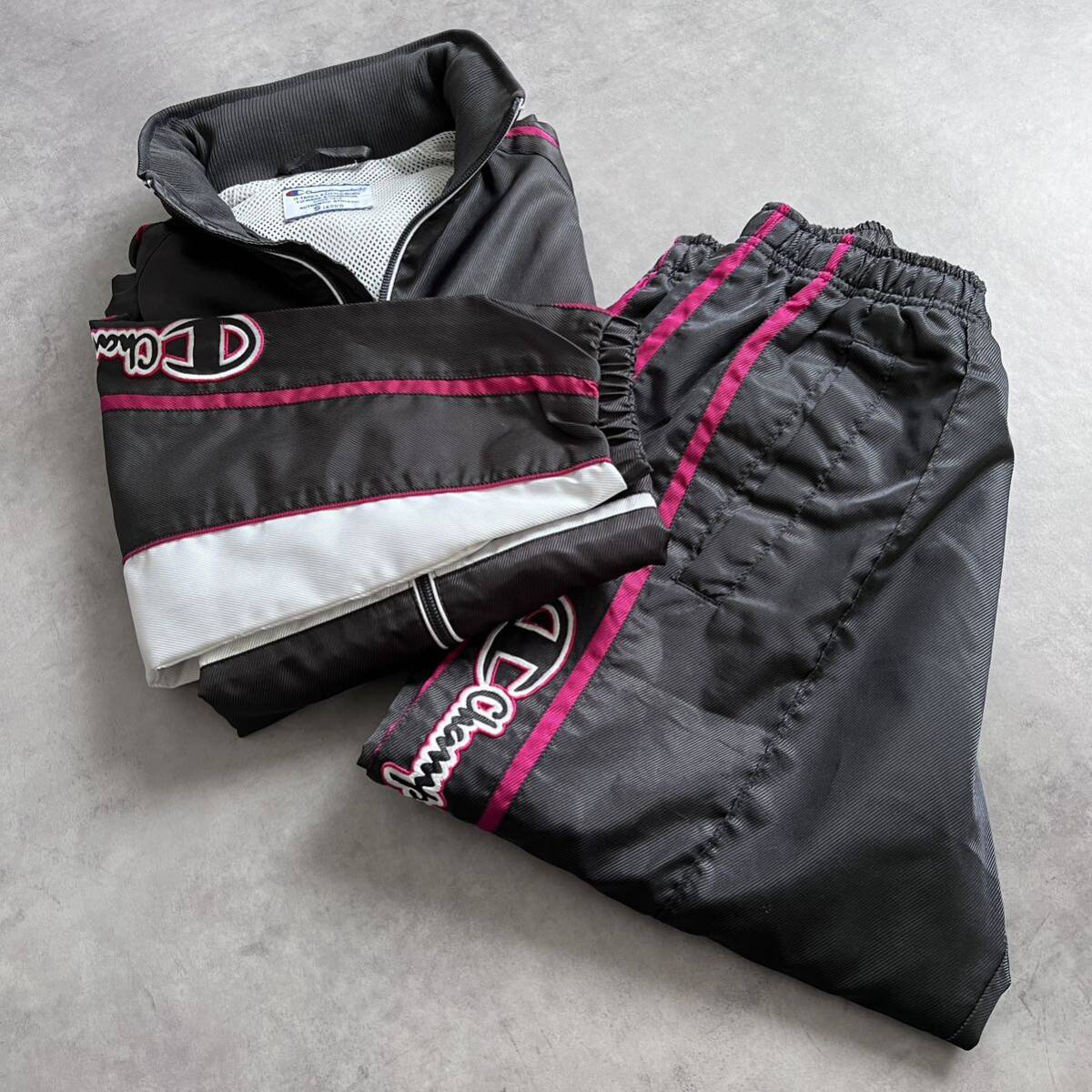 > Champion チャンピオン トラックジャケット パンツ 上下セット Sサイズ グレー×ホワイト×ピンク