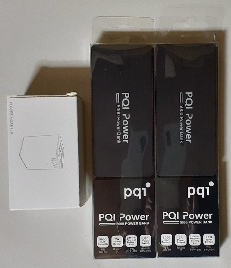 > 4387 2個 未使用 モバイルバッテリー 5,000mAh 5V 2A PQI Power 5000C + USB電源アダプタ2ポート GS-50100C/GS-50210C 1個