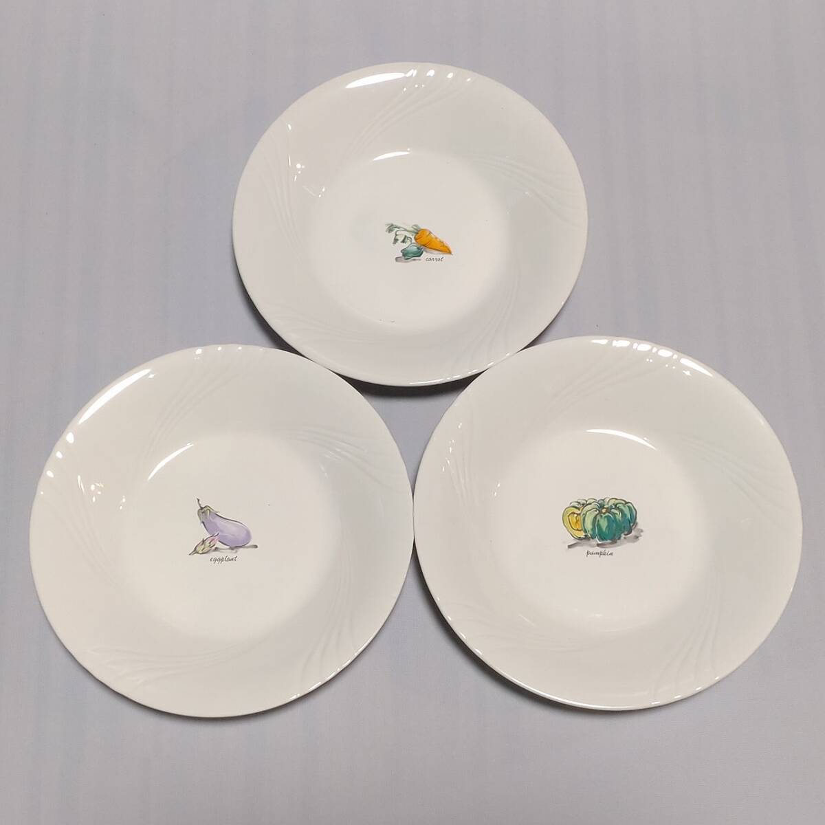 > 洋食器 3枚 カレー皿 スープ皿 直径約213㎜ なす かぼちゃ にんじん プレート 【3445】
