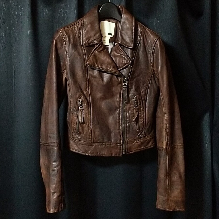 - Levi's リーバイス ダブルライダースジャケット ブラウン XS レディース 羊革 ラムレザー