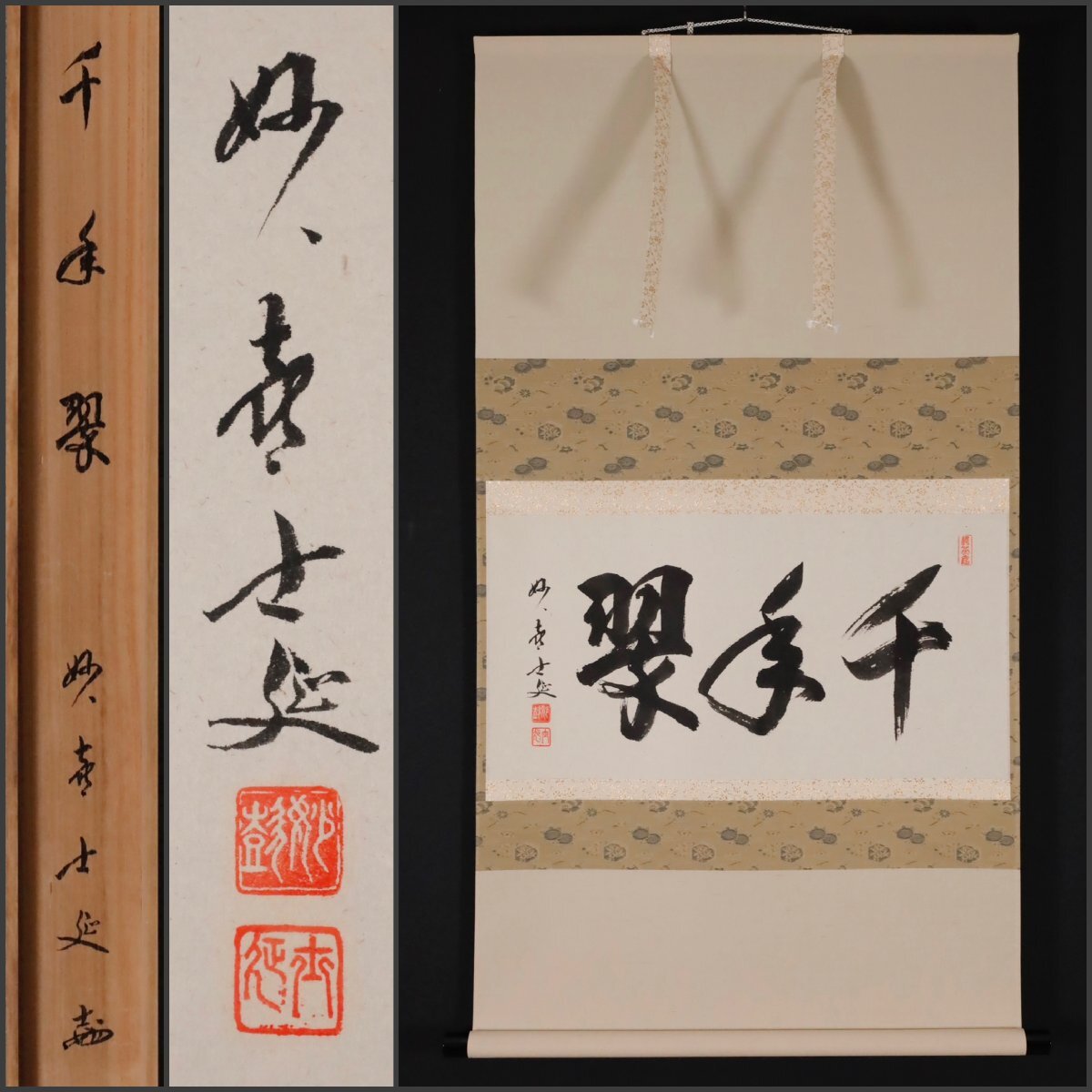> 【模写】吉】10484 武田士延 書「千年翠」 共箱 臨済宗 東福寺派 妙喜庵住職 仏教 茶掛け 茶道具 禅語 掛軸 掛け軸 骨董品