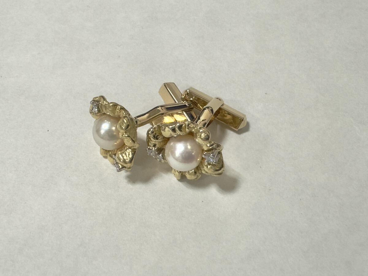 > 【質屋 尾張屋商店 東京】 ☆仕上済☆ 岩倉康二 K18YG Pt900 パール ダイヤモンド カフス メンズアクセサリー 7mm