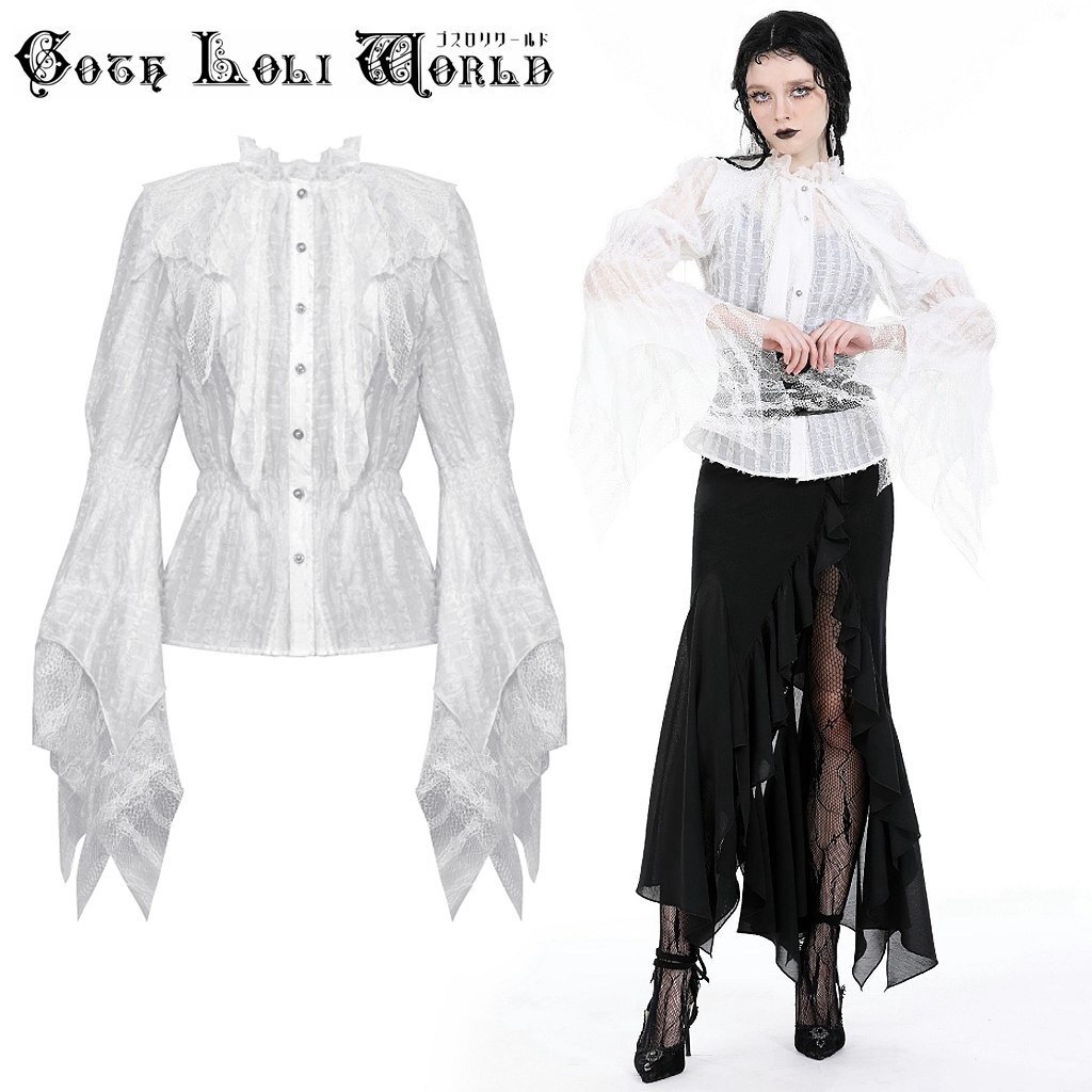 > IW109-S ホワイトシースルーラッフルフリル ブラウス ゴスロリワールド ゴシック パンク ロック ロリィタ ビジュアル系 V系