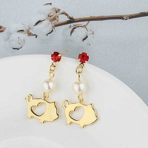 - 新品★送料無料 極上の逸品 極希少 絢爛 厳選 Gold Plated ジルコニア ピッグ&ハート CZダイヤモンドピアス 限定 シルバー925 レディース