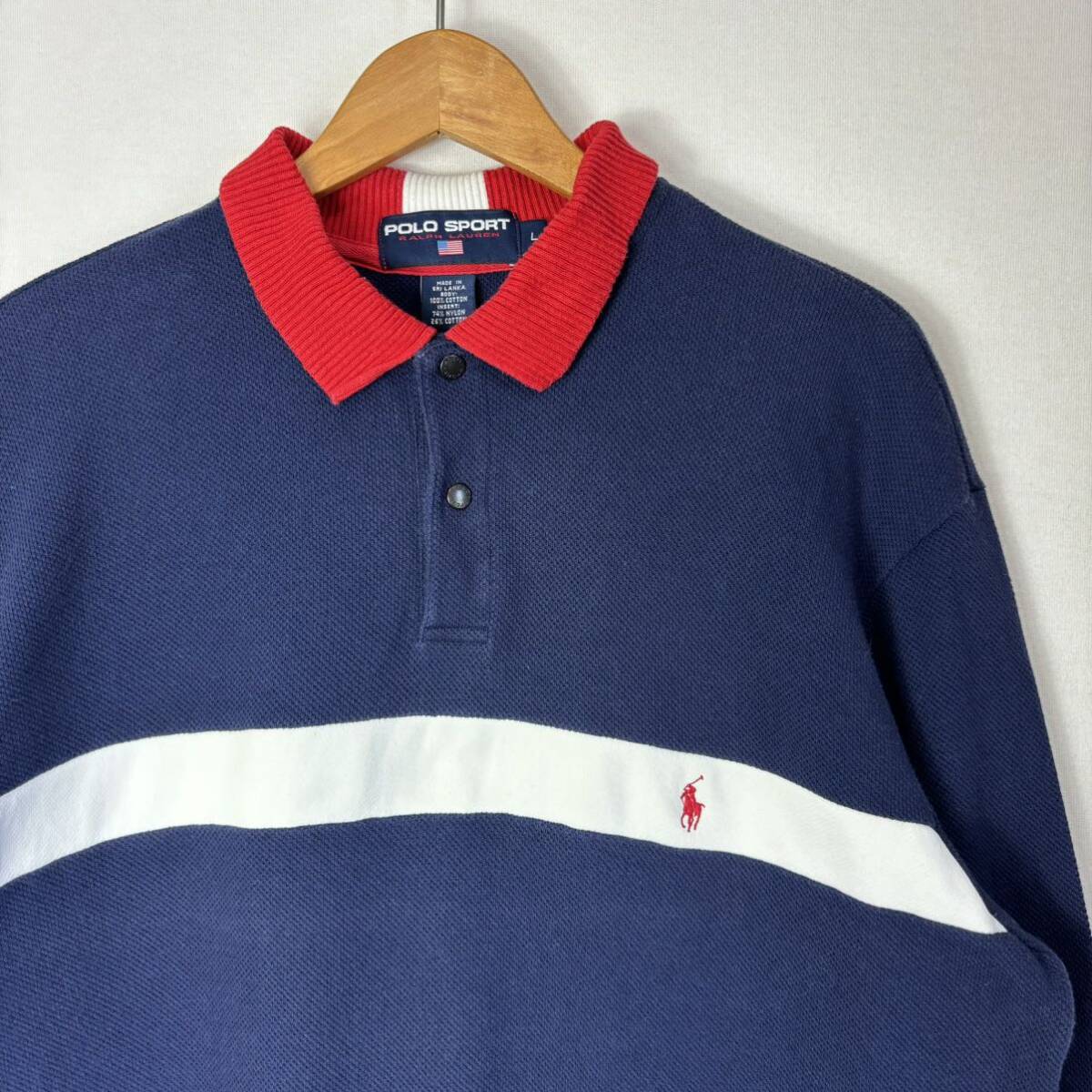 > ビンテージ【POLO SPORT】トリコロール 長袖 ポロシャツ L ポロ ラルフローレン 古着 鹿の子 ナス紺 ポニー RL93 90s HIP HOP TLC 00s Y2K
